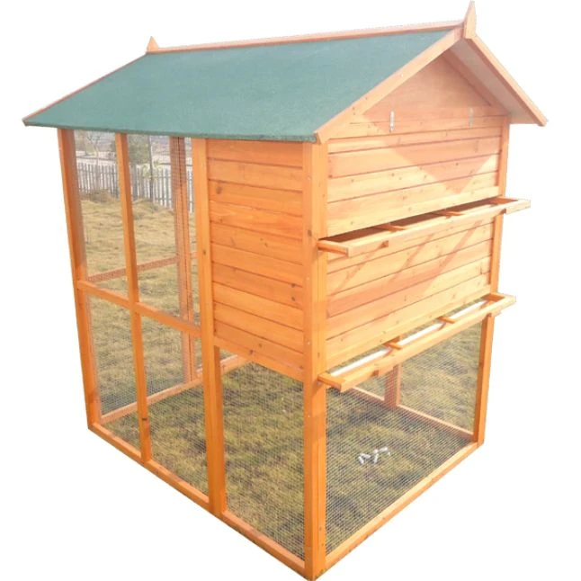 Ces derniers seront bien à l’abri de la pluie et des intempéries sous leur toit à double pente couvert de bardeau bitumé épais et étanche appelé shingle. Une petite trappe placée juste sous son faîte vous permettra de laisser entrer et sortir vos compagnons, si vous le souhaitez bien sûr.