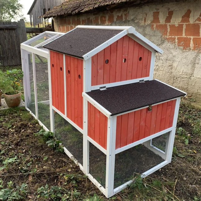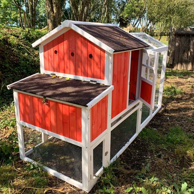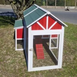 Vous recherchez un poulailler en bois design et spacieux pour vos poules, qui apporterait une petite touche de couleur à votre jardin ? Le modèle Ardennais, prévu pour 6 à 8 poules, est conçu en bois de Pin coloré rouge et blanc de 12 mm d’épaisseur.