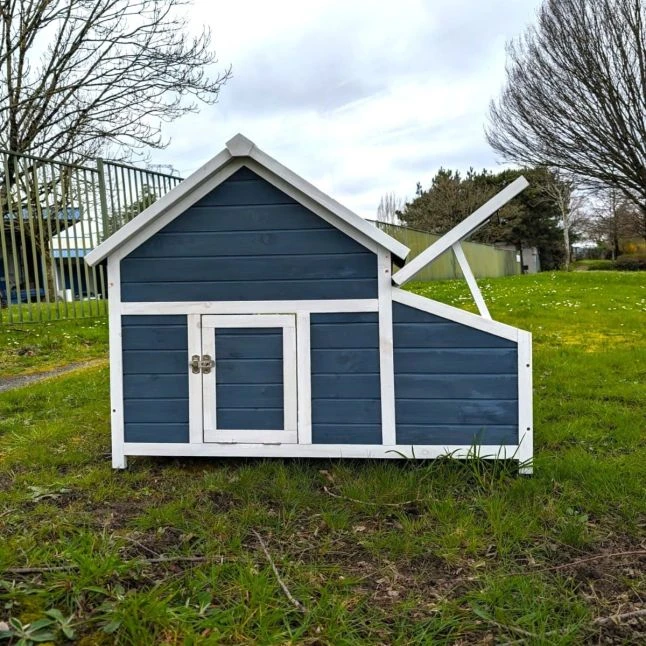 Un poulailler en bois bleu, joli et confortable pour vos volailles