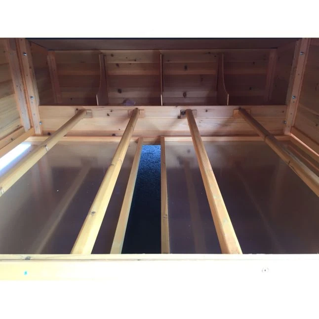 La structure surélevée repose sur quatre pieds, garantissant une protection contre l’humidité provenant du sol. Vos gallinacés pourront profiter de leurs 4 perchoirs en toute tranquillité, sans craindre d’être mouillés !