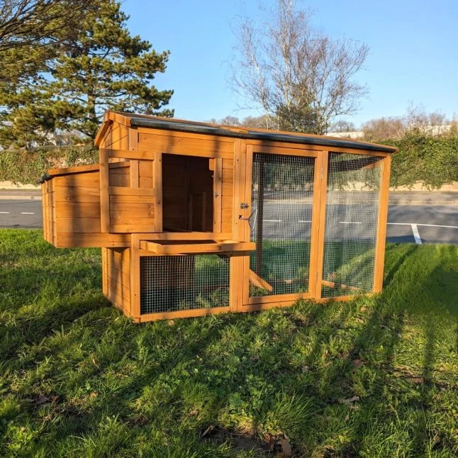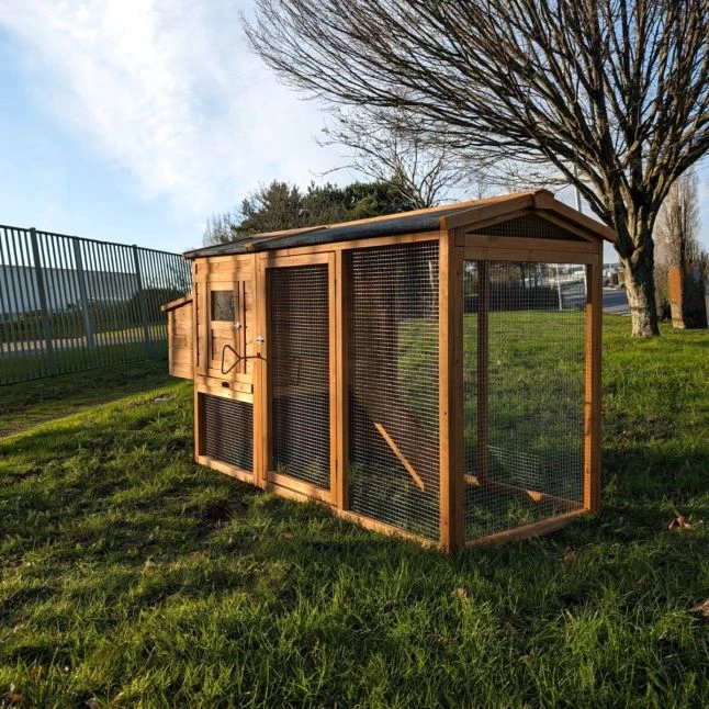 Poulailler Deluxe Rouge Toit Shingle Vert 10 à 12 Poules Avec Extension Parc Grillagé