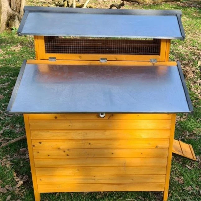 Les toits à chaque extrémité s’ouvrent, offrant ainsi un accès direct à l’intérieur du poulailler.