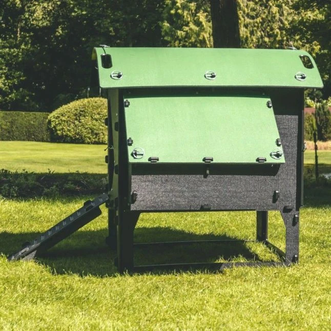Optez pour un habitat pour poules conçu en plastique totalement recyclé, matériau durable qui simplifie considérablement son nettoyage. Une simple aspersion d’eau est en effet suffisante pour le nettoyer complètement et il sèchera vite !