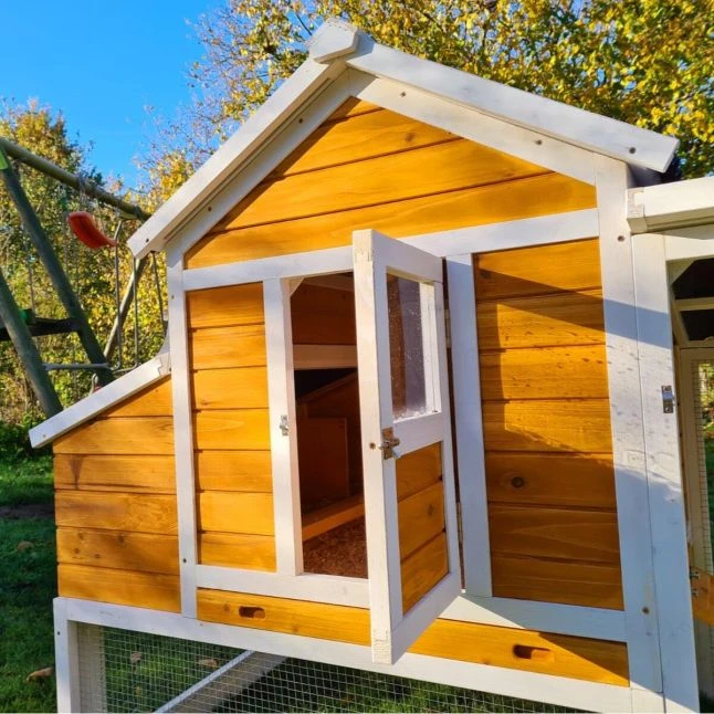 Son aspect très déco en fera une pièce de choix dans votre jardin. Notez que les plus jeunes, tout comme les plus âgés d’ailleurs, seront enchantés de pouvoir observer des poules dans leur environnement grâce aux larges panneaux grillagés.
